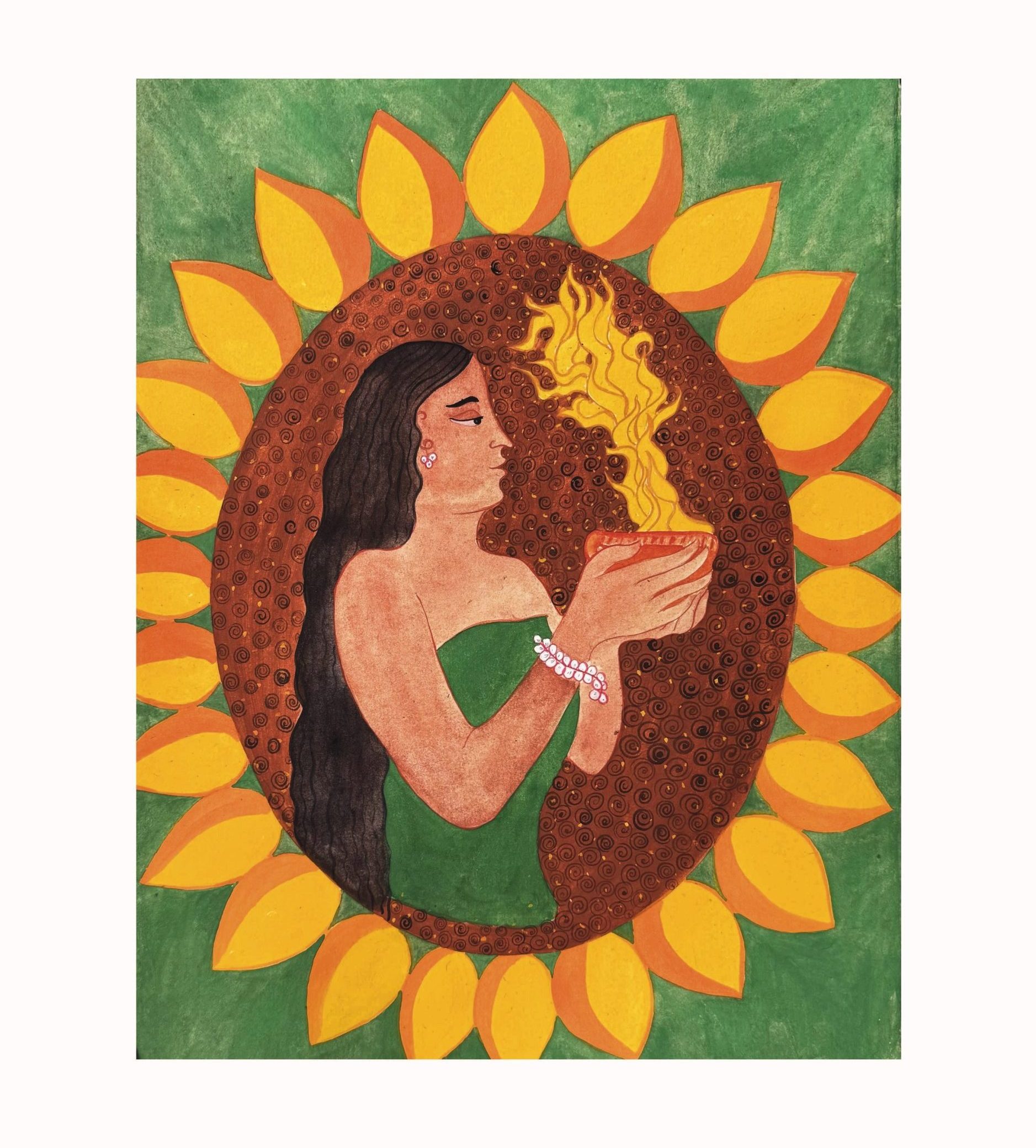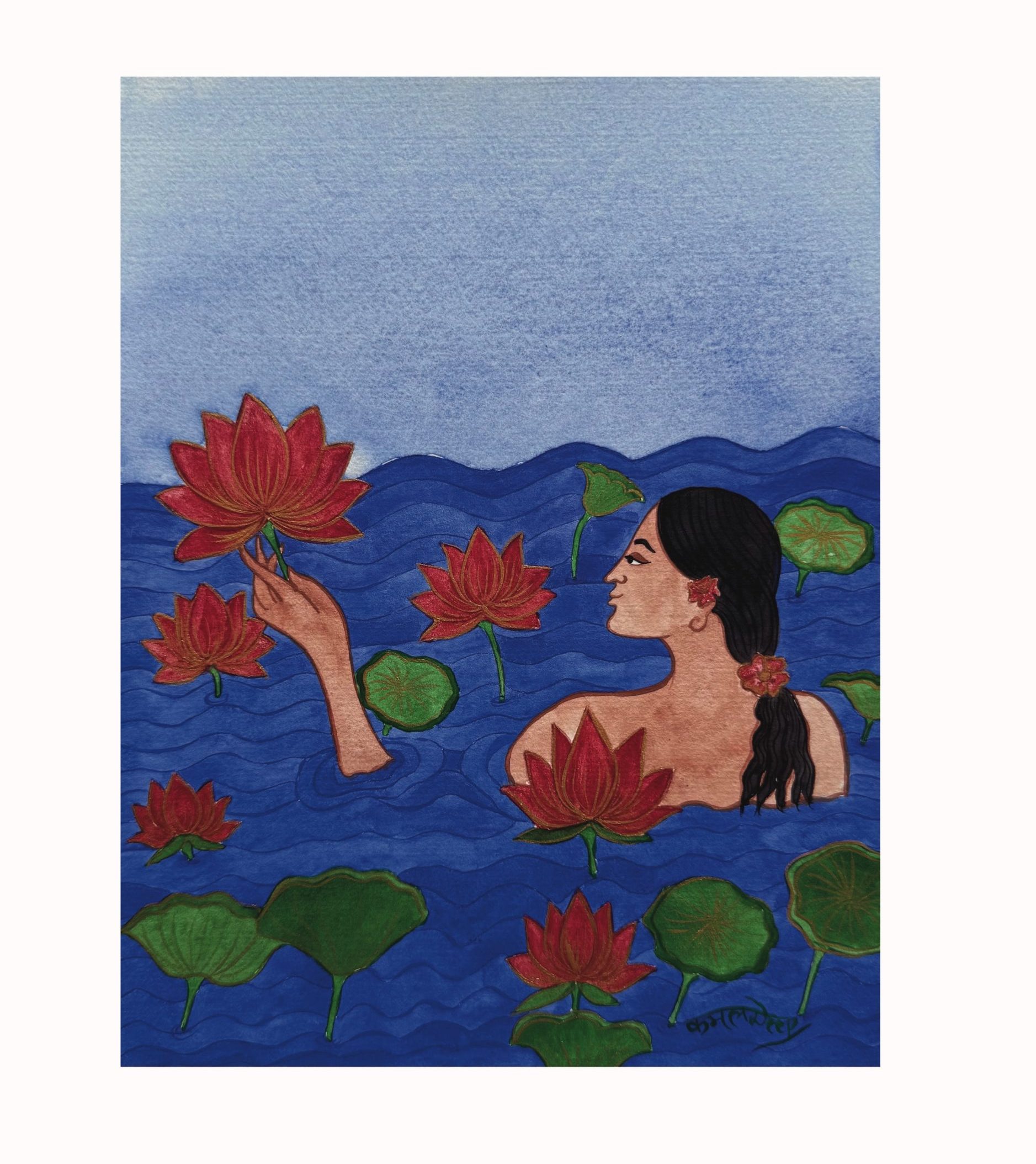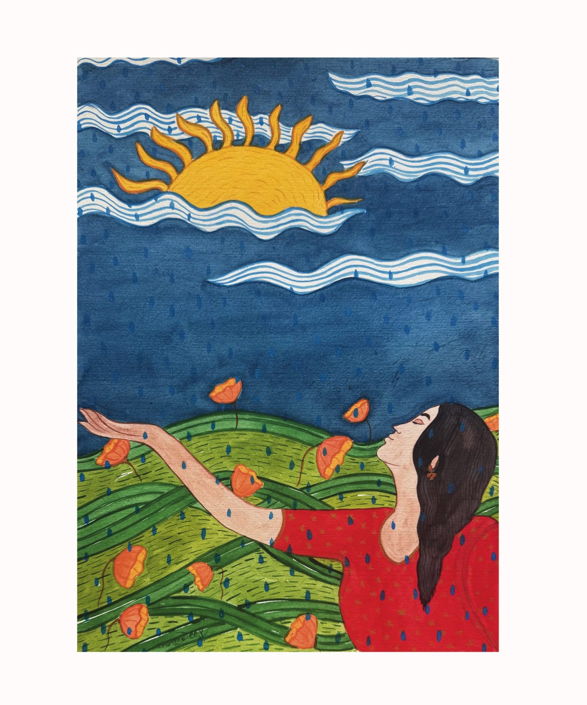 I’ve depicted a character who is trapped in her own time zone in this series. There are a lot of stories that go along with her. With each story, she improves. She is sometimes in her own mind, other times in her imaginary world, mythological stories, or her own ideas. Her identity remains constant, but her appearance shifts.