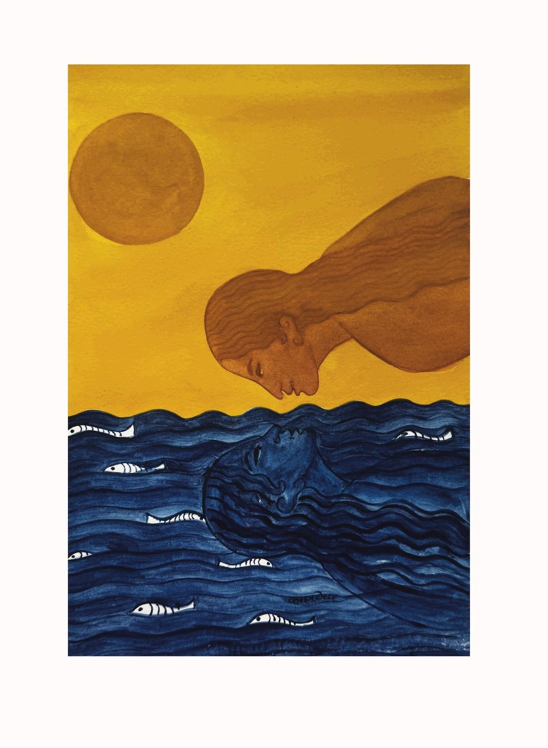 In She Walks Between the Moments, she becomes more aware of her presence, learning to exist in the fragile space between past and future. Influenced by meditation and stillness, she walks not as a captive of time, but as a witness to it.