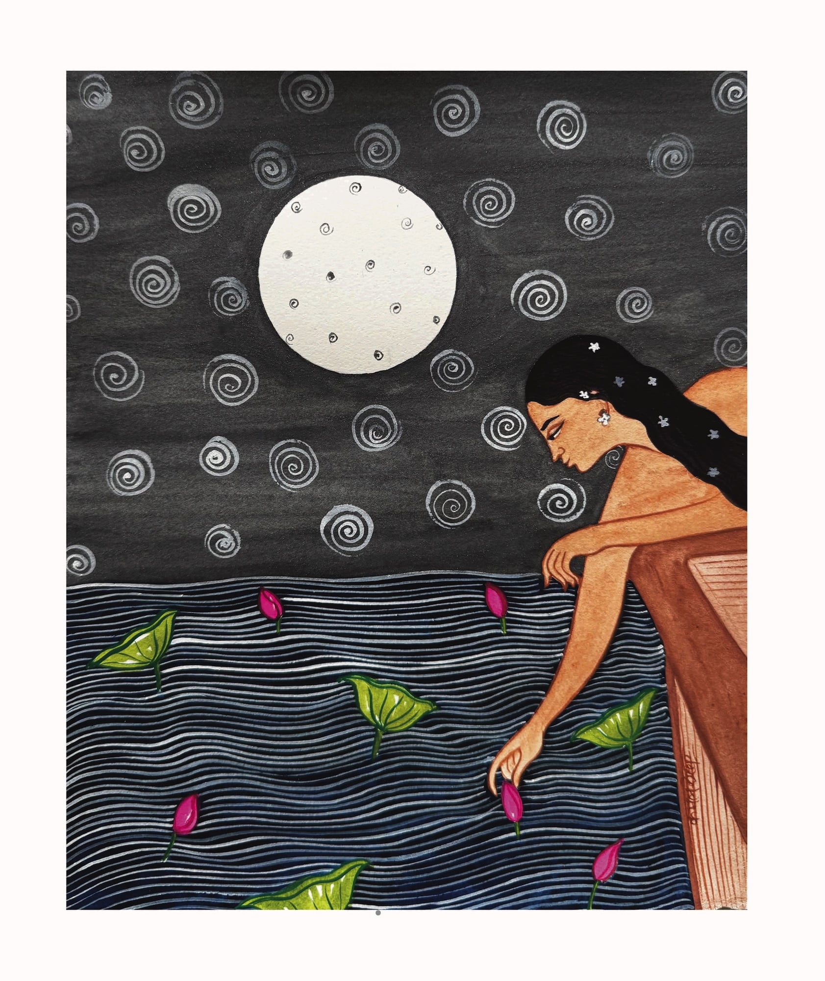 CHANDNI RAAT- Moonlit Night | 16″ X 12.5″ | Natural Colors and Gouache on Saunders watercolour sheet