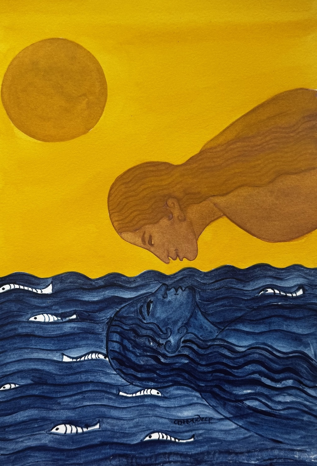 DANCING BETWEEN FLAMES AND WATERÂ |Â 15.5″ X 12.5″ | Natural Colors and Gouache on Saunders watercolour sheet
