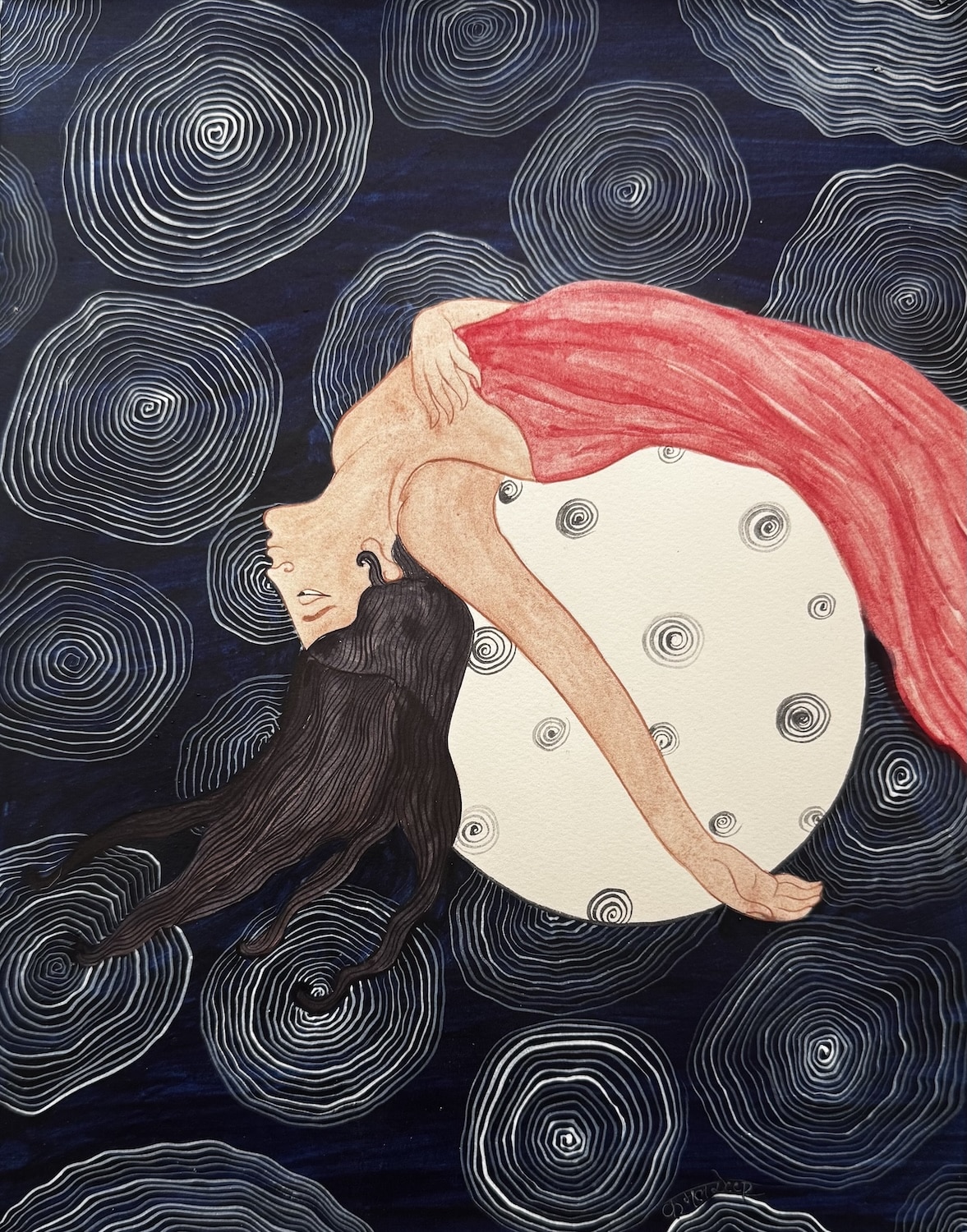 REACHING MOON | 18″ X 14″ | Natural Colors and Gouache on Saunders watercolour sheet